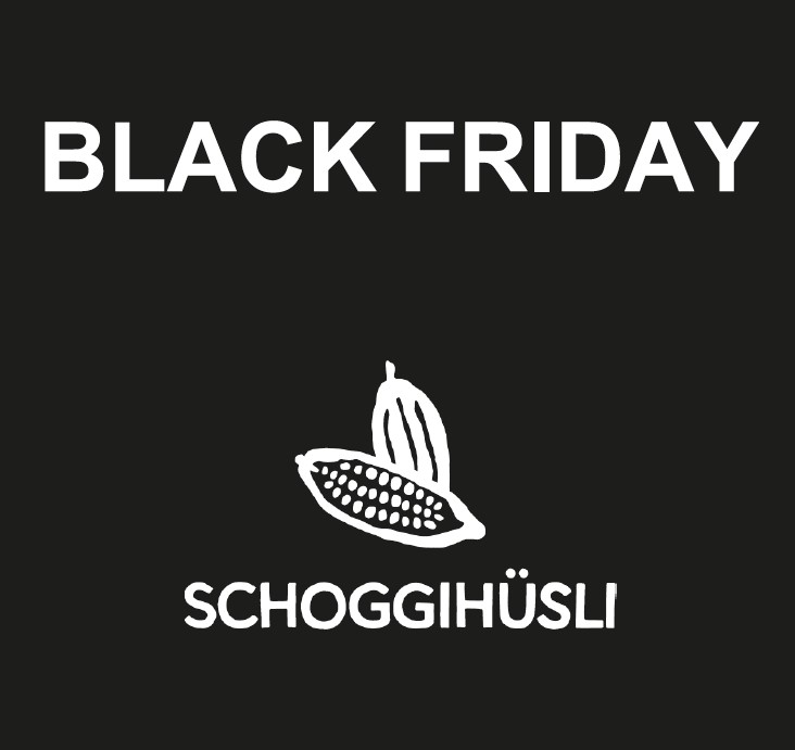 Eine Tasche voll feinster Schokolade zum Black Friday Spezialpreis von 10 CHF! Gilt nur am 29.11.19 (solange Vorrat). Bitte beachten Sie dabei die Öffnungszeiten der beiden Schoggihüsli.