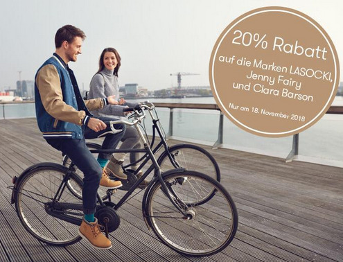 Bei Vögele Shoes gibt es heute am Sonntag 20% Rabatt auf die Marken LASOCKI, Jenny Fairy und Clara