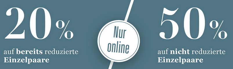Bei Ochsner Shoes gibt es heute 20% Rabatt auf bereits reduzierte Einzelpaare sowie 50% Rabatt auf nicht reduzierte Einzelpaare.