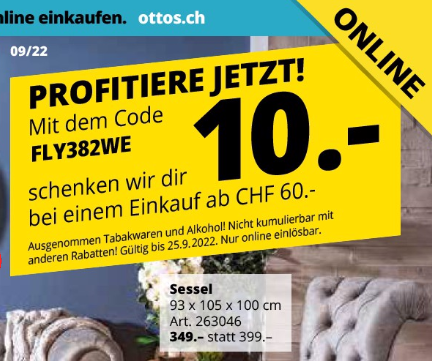 Es gibt wieder einen neuen Otto’s 10 CHF Gutschein gültig bis 18.12.2022 ab 60 CHF (ausgenommen Tabak und Alkohol)