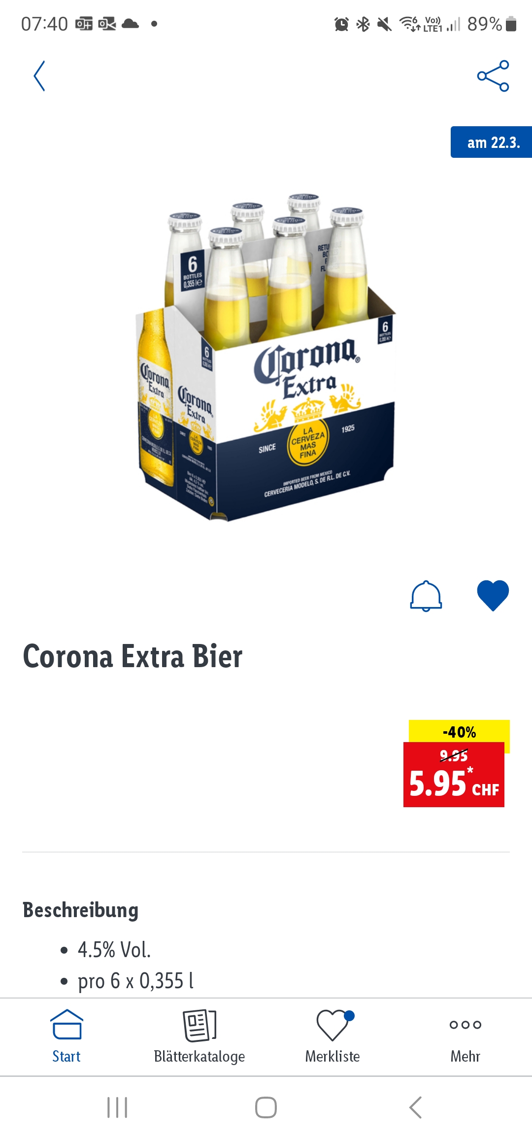 Es gibt wieder einmal eine Corona Bier Aktion am 22.3. im Lidl. Nachdem die Preise im Denner als auch im Ottos sich bei 6.65 in ihren Aktionen eingependelt haben, ist dies nun endlich wieder mal etwas unter 6 Stutz.