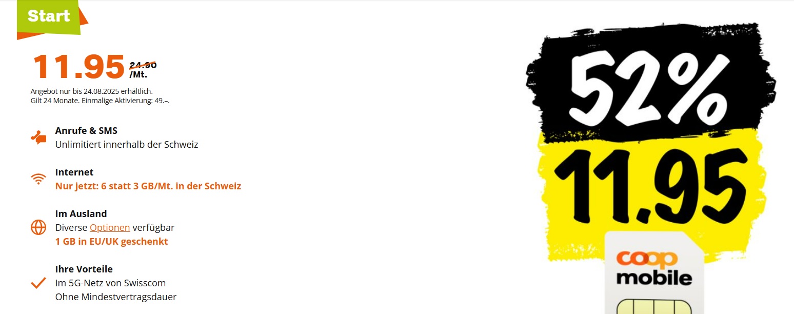 NasenPirat hat den neuen Beitrag Coop Mobile CHF 11.95 – 6GB + 1GB Roaming geschenkt geschrieben vor 5 Monaten, 2 Wochen
