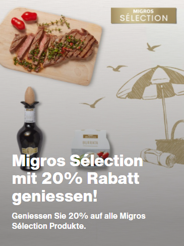Bei Migros gibts noch bis zum 2.8. 20% Rabatt auf das gesamte Migros Sélection Sortiment. Dabei handelt es sich vorwiegend um hochpreisige Premium-Produkte wie z.B. Büffelmozzarella, Gewürze, Schokoladen et […]