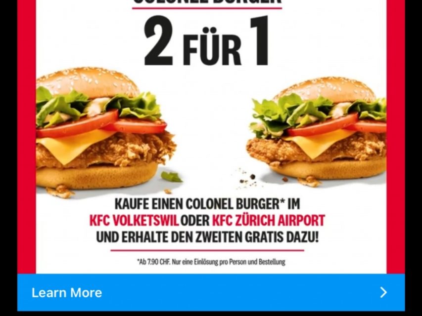 CrAnkLegend hat den neuen Beitrag [Volketswil/ZRH] 2 für 1 Colonel Burger bei KFC geschrieben vor 5 Jahren, 3 Monaten