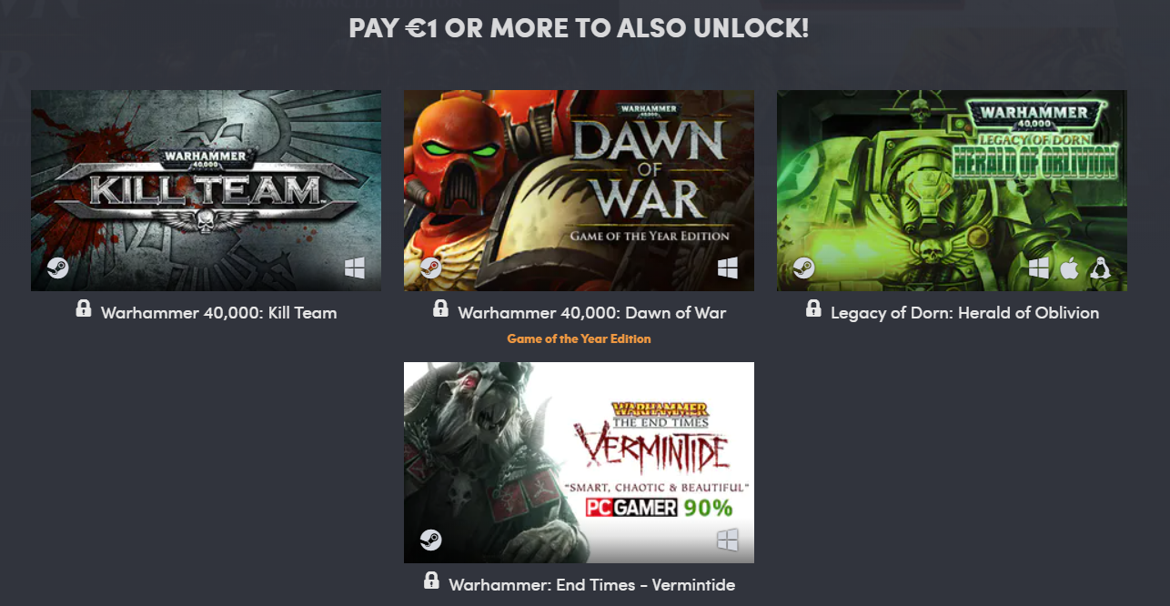 Bei Humblebundle gibts derzeit ein Warhammer Bundle zum Preis ab 1€ zu ergattern. So gibts die Games Warhammer 40,000: Kill Team, Dawn of War, Warhammer: End Times – Vermintide und Legacy of Dorn: Herald of O […]
