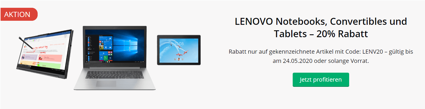 Bei microspot gibts bis zum 24.05. 20% Rabatt auf diverse Lenovo Produkte, ich liste hier die (meine Meinung) besten Angebote auf. Beachtet, dass bei vielen Produkten nur schwierig ein VGP zu setzen ist, da die […]