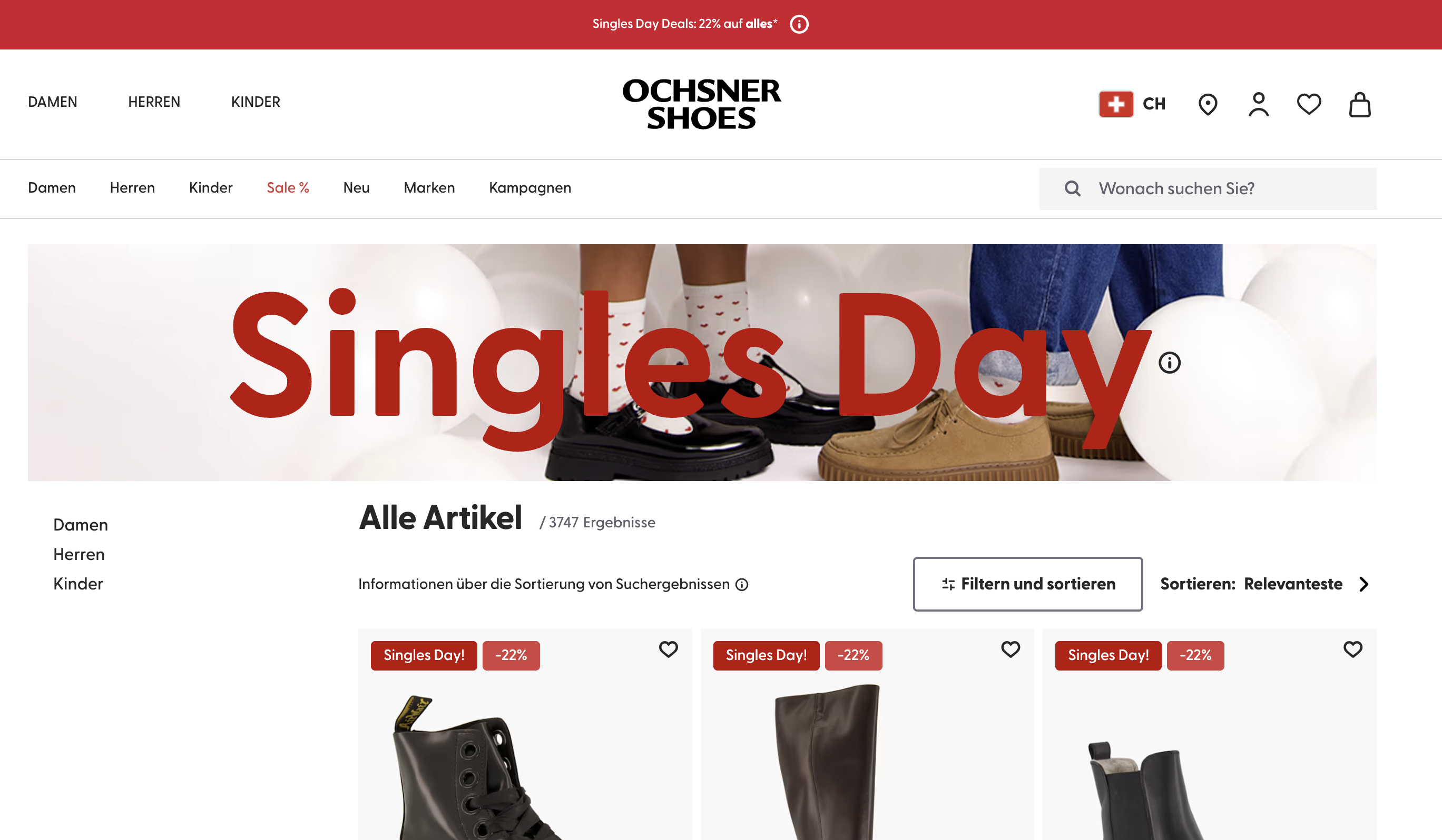 Niagara hat den neuen Beitrag Singles Day bei Ochsner Shoes –22 % auf alles! (ausgenommen auf bereits reduzierte Artikel) geschrieben vor 3 Wochen, 4 Tagen