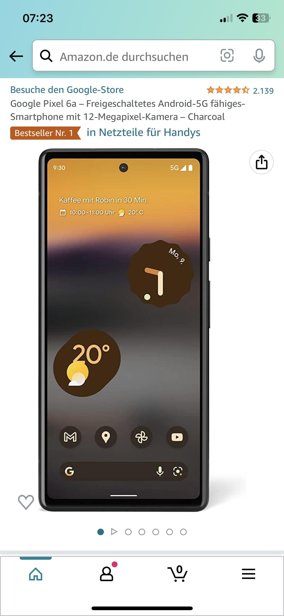 Grad gibt es das Google pixel 6a bei amazon.de in der farbe Charcoal (schwarz) für 248,50 chf (251,15€).