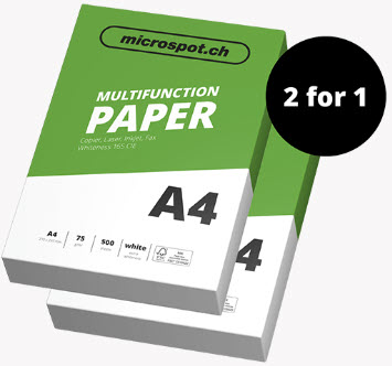 Bei microspot.ch gibt es ein Multifunktionspapier gratis bei Bestellung von 2 Stück.