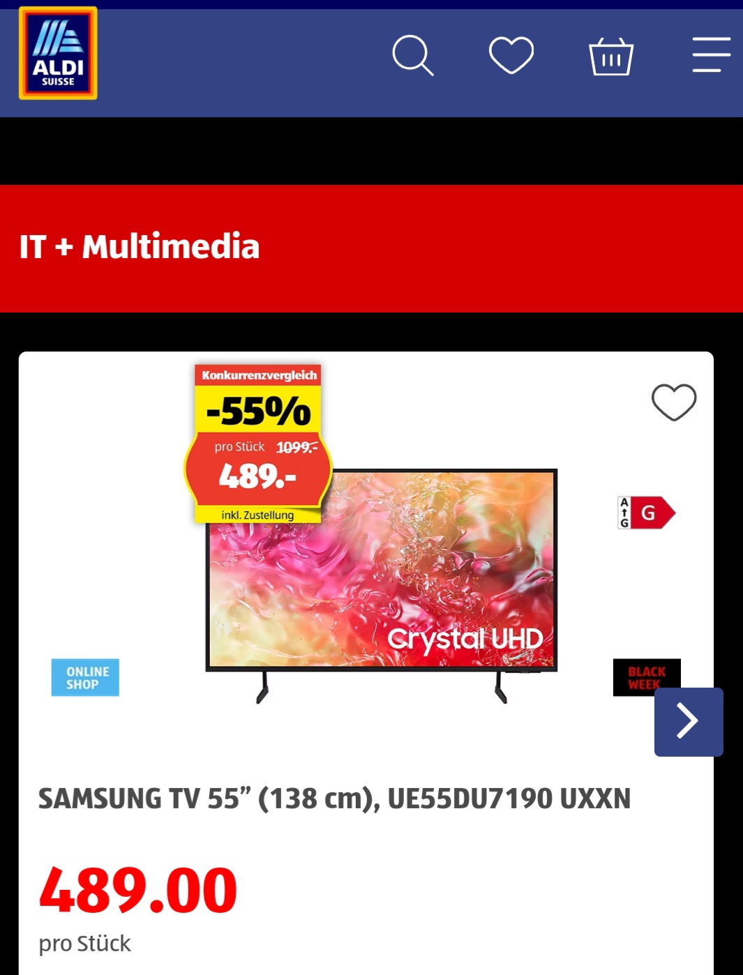 Bei Aldi hibt es aktuell einen Samsung 55″ 4K TV für CHF 489.- und das gleiche Gerät in 85″ für CHF 1’199.-.