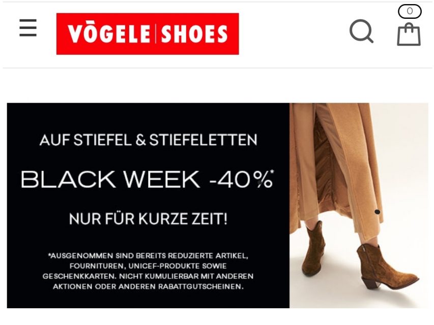 Ab Heute bis zum 21.11. gibt es bei Vögele Shoes 40% auf Stiefeletten und Stiefel.