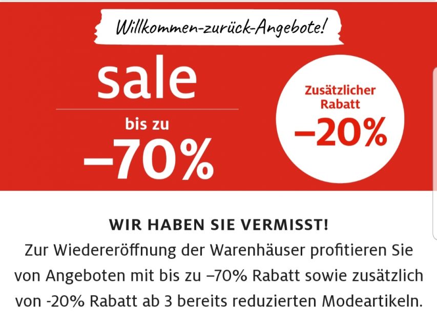 Auf alles was im Sale ist, gibt es noch einmal 20% extra.