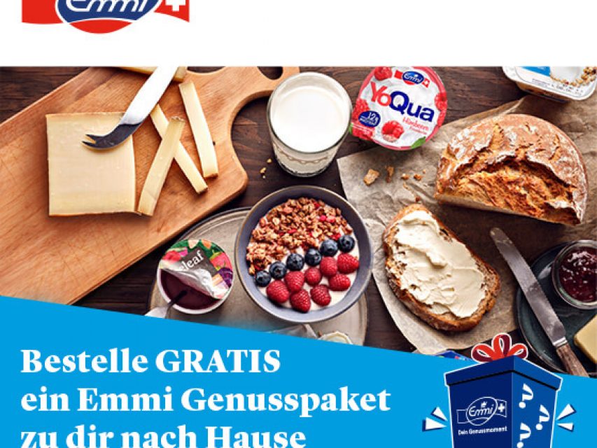 Emmi versüsst dir deinen Homeoffice-Alltag mit einem gratis Genusspaket voller Emmi Genussmomente. Jetzt Postleitzahl eingeben und herausfinden, ob das Paket in deiner Region verfügbar ist!*