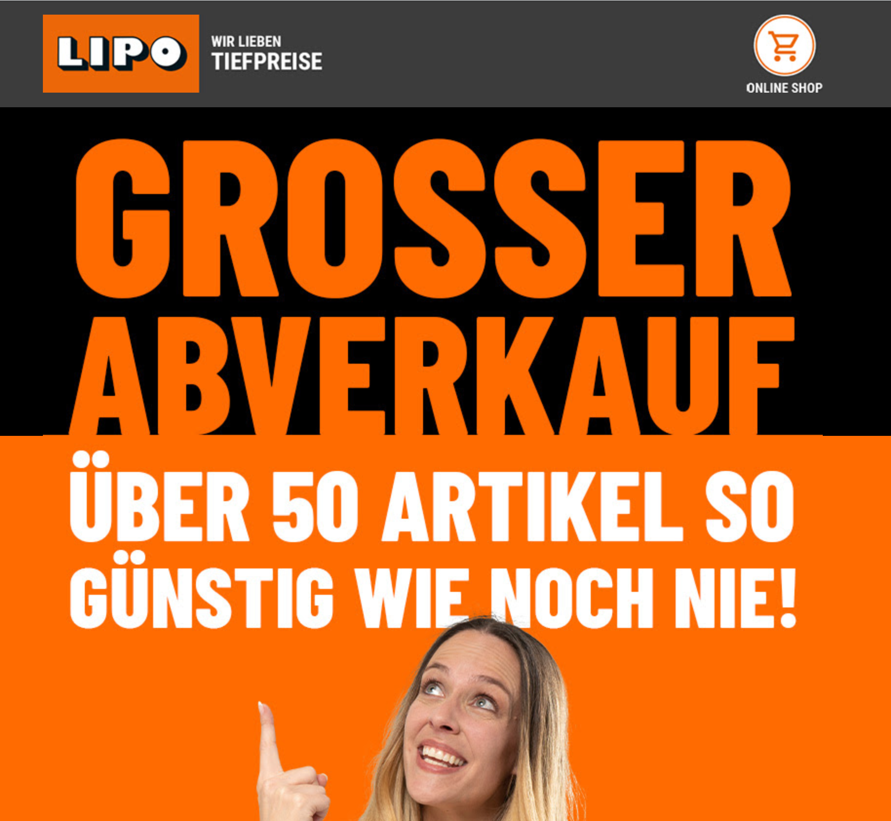 juelu hat den neuen Beitrag Abverkauf bei LIPO: "50 Artikel so günstig wie noch nie" geschrieben vor 5 Jahren, 9 Monaten