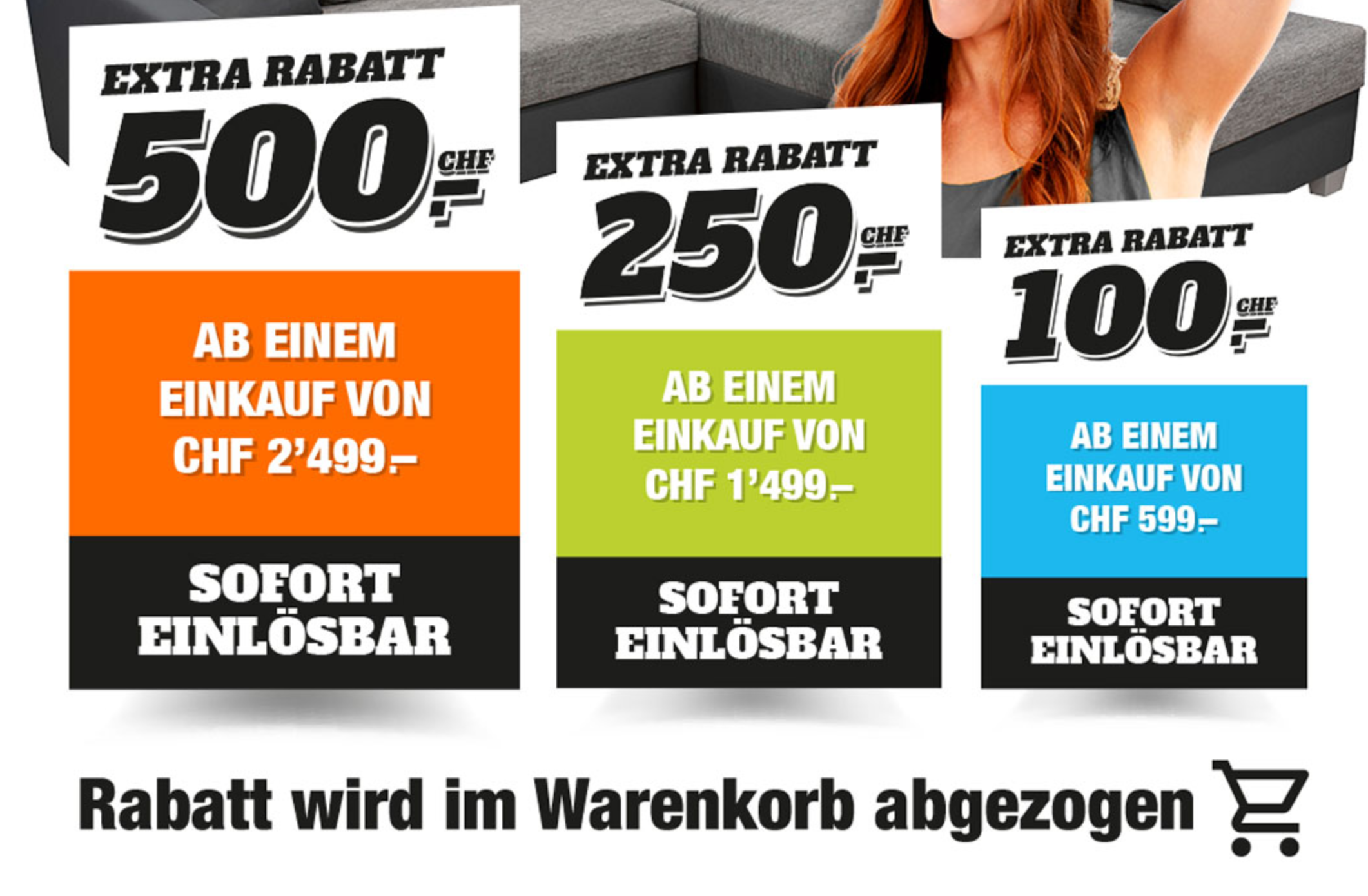 Nur heute gibt’s bei Conforama 100 Franken Rabatt ab einem Einkaufsbetrag von 500.- Der Gutscheincode lautet PROMO100