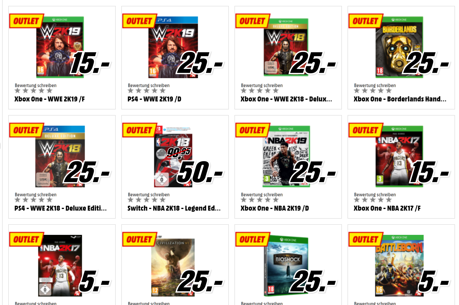 Im Outlet des MediaMarkt Onlineshop gibt’s derzeit diverse Games zum neuen Schweizer Bestpreis. Pro Game werden, je nach Aktualität, zwischen 5-25 Franken fällig. Red Dead Redemption 2 gibt’s für 50.-