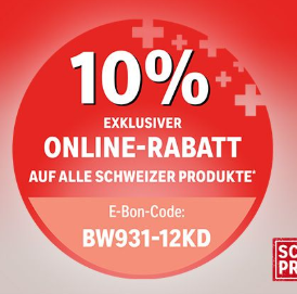 Bei coop bau + hobby gibt’s bis am 1. August mit dem Gutscheincode BW931-12KD 10% Rabatt auf alle Schweizer Produkte.