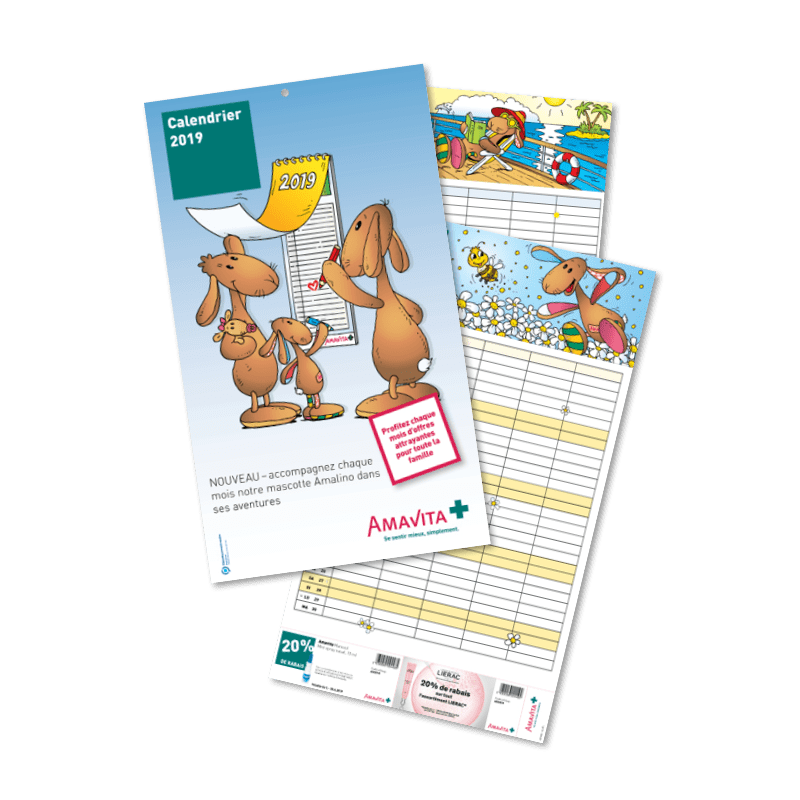 Bei der Amavita erhält man einen gratis Familienkalender 2019. Im Kalender drin gibt’s offenbar auch einige Gutscheine.