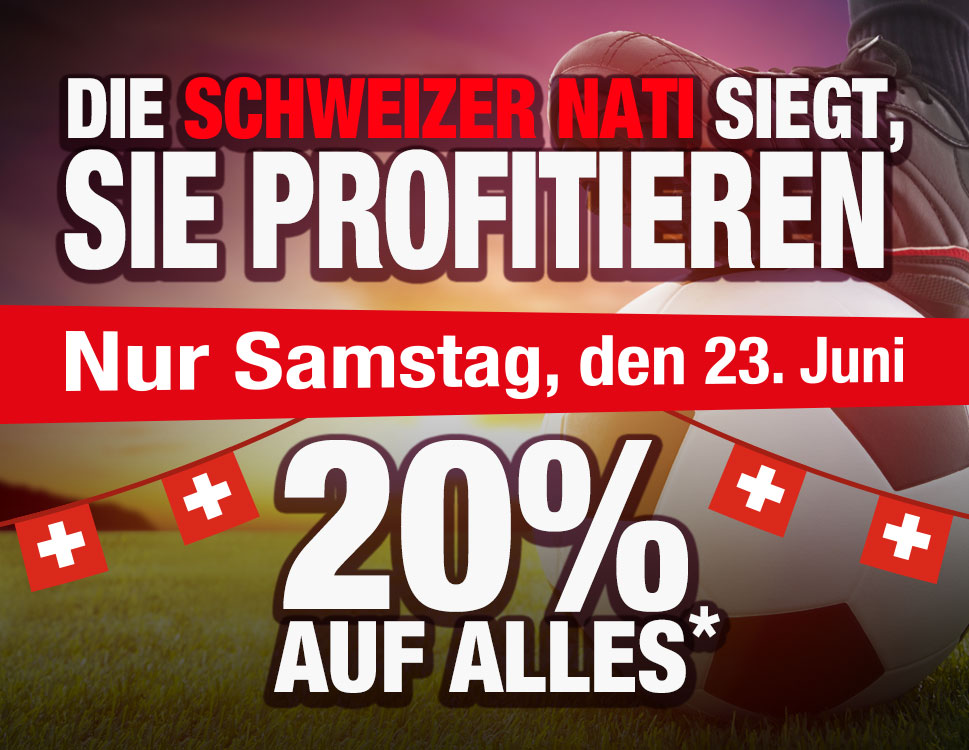 Zum Sieg der Nati schenkt euch LIPO heute 20% Rabatt auf alles – nur in der Filiale gültig. Da der Nachmittag schon weit fortgeschritten ist, musst du ein wenig mit dem Einlösen pressieren.