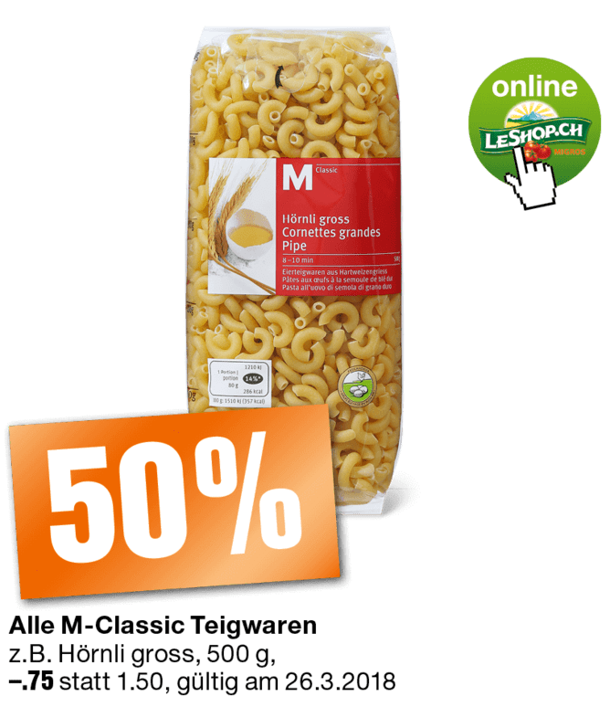 juelu hat den neuen Beitrag Nur heute: 50% Rabatt auf MClassic Teigwaren bei Migros und LeShop geschrieben vor 7 Jahren, 10 Monaten