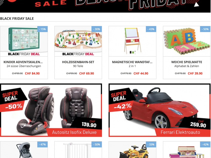 Kinderartikel mit Blackfriday-Rabtten. Ich habe heute schon das Weihnachtsgeschenk für mein Gottenmeitli dort bestellt 🙂