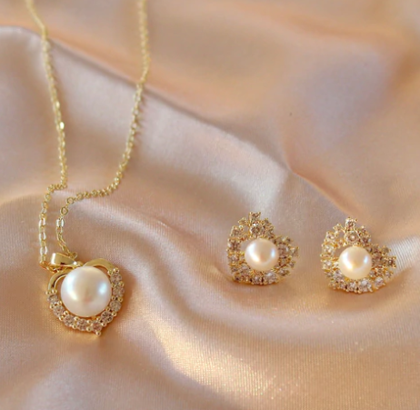 Ein Set aus Halskette und Ohrstecker mit Echtperlen. Zum Preis von 55.- statt 78.-