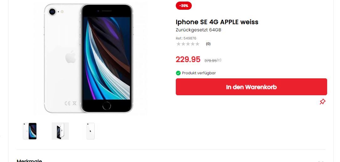 Bei Conforma gesichtet, iPhone SE 2020 (weiss) für knapp unter 230 Stutz. Soll sofort verfügbar sein.