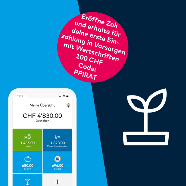 Pvlermo hat den neuen Beitrag Zak: CHF 100.- für die erste Einzahlung in Vorsorgen mit Wertschriften für Neukunden geschrieben vor 4 Jahren, 6 Monaten