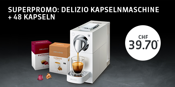 Vom 22.-28.09 kann man die Delizio Una White + 48 Kapseln zum super Preis von CHF 39.70 ergattern. Diese Kombo gab es erst einmal zu diesem Preis.