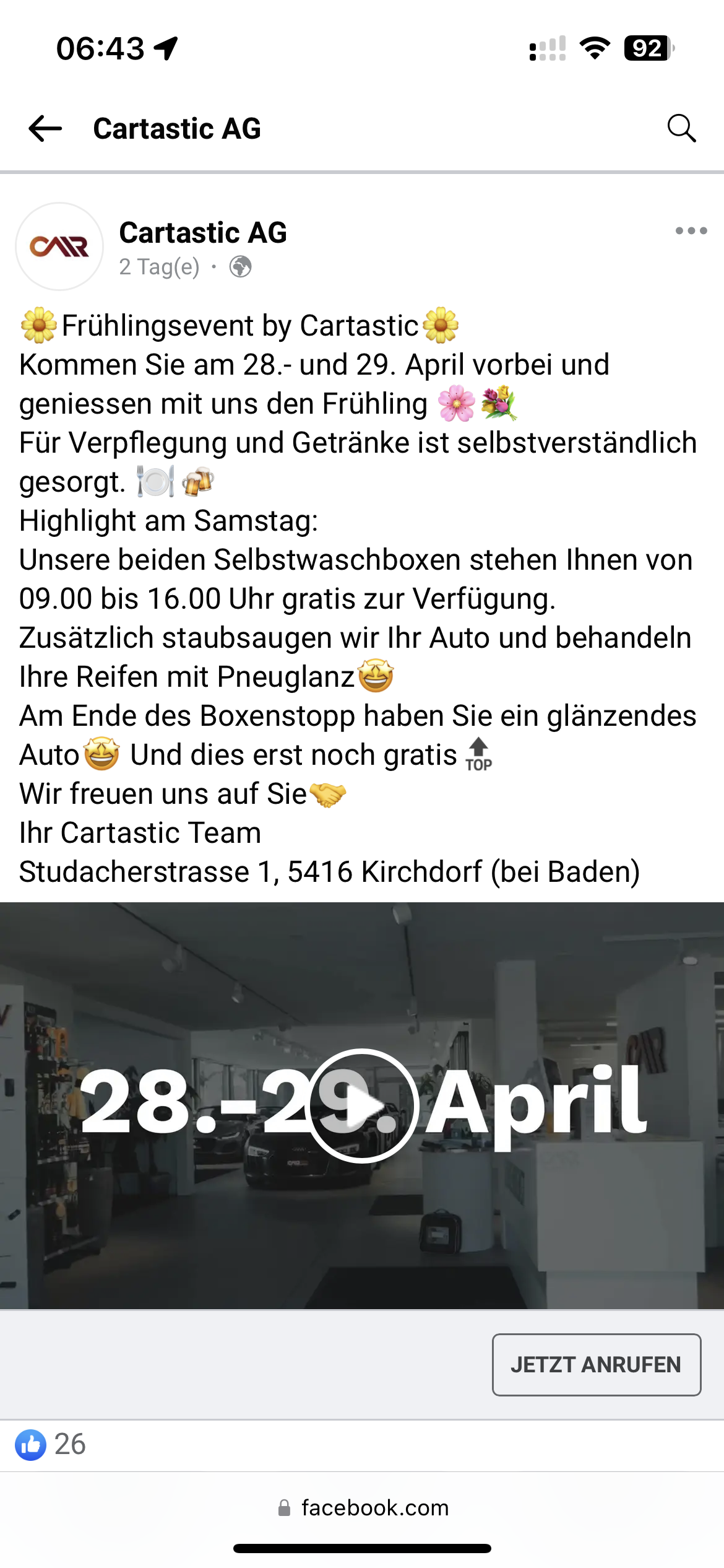 Sparrips hat den neuen Beitrag 29.04.2023 Gratis Autowäsche mit Staubsaugen Lokal AG Kirchdorf bei Baden geschrieben vor 2 Jahren, 7 Monaten
