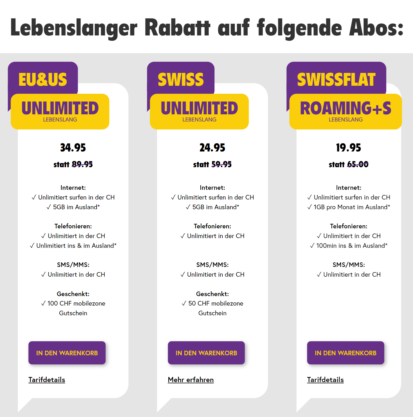 EU&US Unlimited Lebenslang für 34.95, inklusive 5GB im Ausland + mobilezone 100 Fr Gutschein