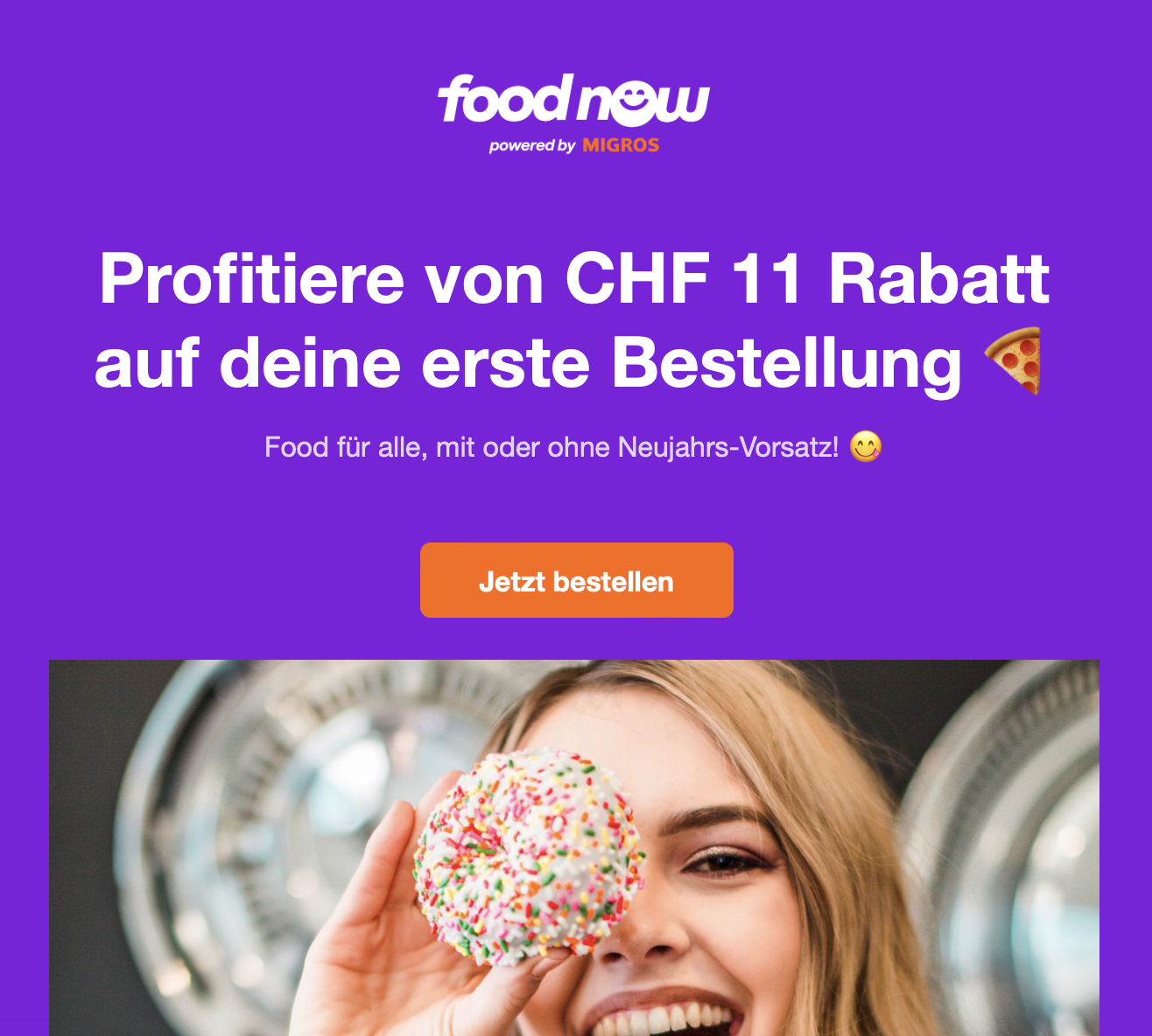 Bei FoodNow gibt es gerade 11 Franken Rabatt auf die erste Bestellung mit dem Code C521U. Der Code ist nur für Neukunden gültig.