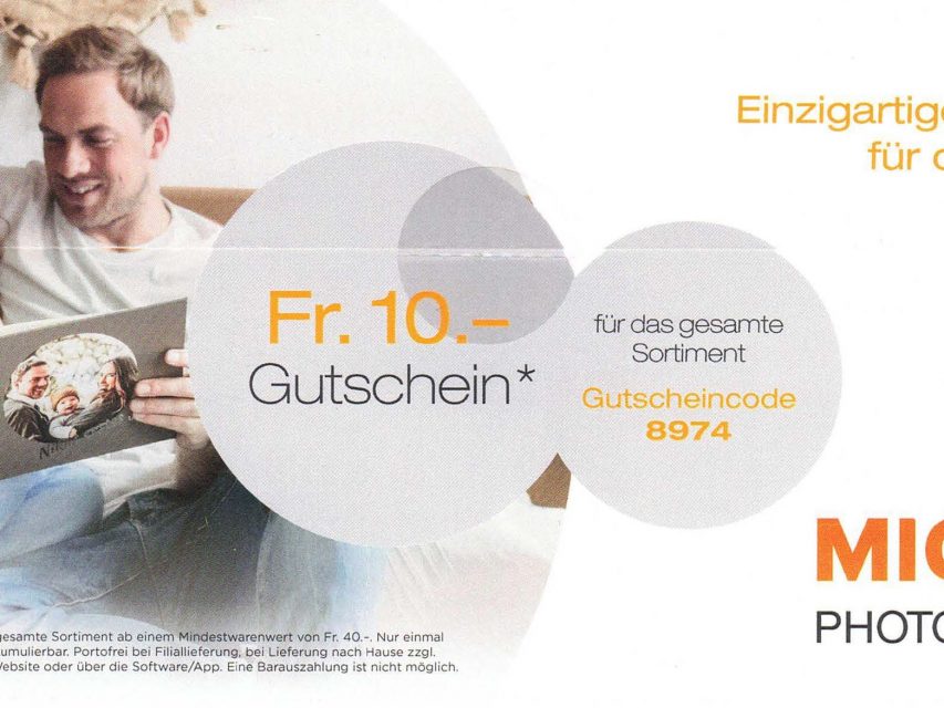 Beim Migros Photo Service gibt es aktuell einen CHF 10 Gutschein (gesamtes Sortiment).