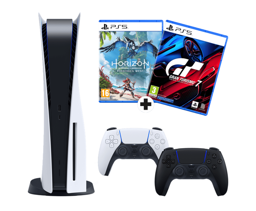 Bei MediaMarkt könnt ihr derzeit die PlayStation 5 + Horizon Forbidden West + Gran Turismo 7 + PS5 DualSense Midnight Black Bundle für CHF 749.- kaufen.