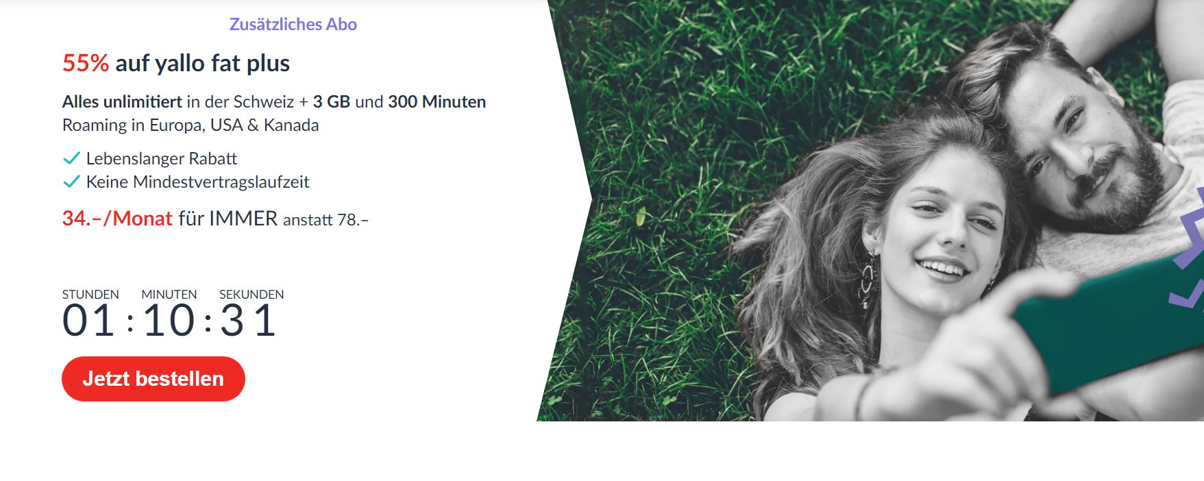Für 34 CHF /mtl. (Statt 78 CHF) mit lebenslangem Rabatt gibts: