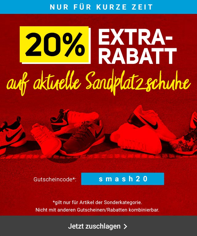 Tennis Point rüstet dich perfekt für das Spiel auf Sandplätzen aus! Du kannst aktuell ausgewählte Schuhe speziell für den Sandplatz um 20% reduziert kaufen. Die Sonderkategorie hierfür findest du, wenn du auf d […]