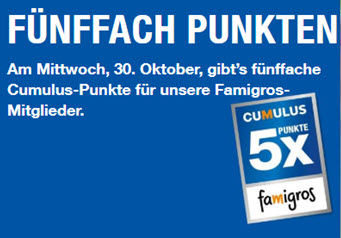 Am Mittwoch, 30. Oktober 2019 ist Familien-Tag in der Genossenschaft Migros Aare: Famigros-Mitglieder erhalten gegen Vorweisen ihrer Cumulus-Karte 5-fache Cumulus-Punkte auf den gesamten Einkauf* in allen […]