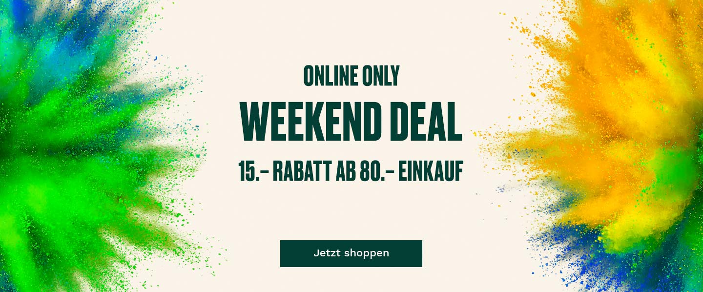 15.- Rabatt auf Einkauf ab 80.-. Gültig Samstag bis Sonntag auf bereits reduzierte Preise, aber nicht kumulierbar mit anderen Angeboten wie gratis Summer Bag.