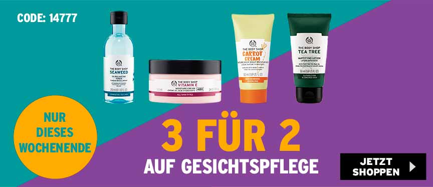 3 für 2 auf alle Gesichtspflege Produkte von The Body Shop.