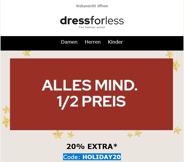 dressforless – Alles mindestens zum 1/2 Preis + zusätzlich noch 20% mit Gutscheincode