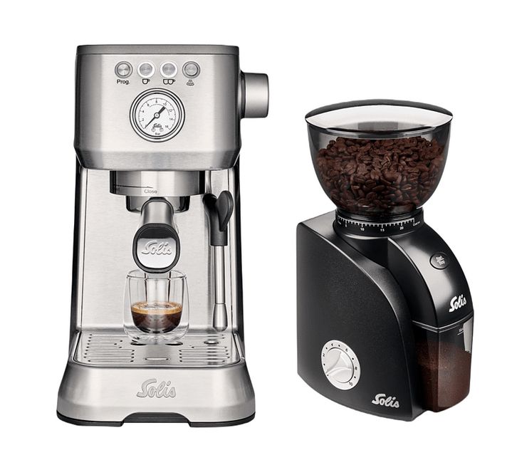 Twint App – SOLIS Siebträgermaschine Barista Perfetta Plus, Edelstahl und Kaffemühle Scala Zero Static 1662