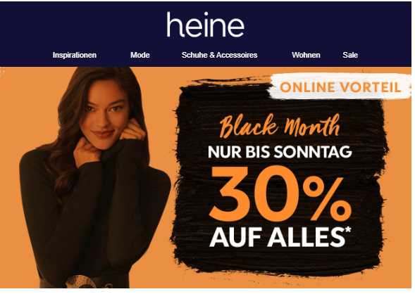 Bei Heine gibt es bis zum Sonntag mit dem Code 12428 30% auf das gesamte Sortiment.
