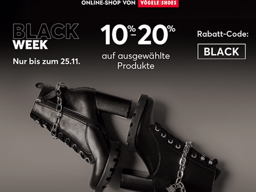 Bei eSchuhe.ch gibt es bis zum 25.11. mit dem Code BLACK bis zu 20% Rabatt.