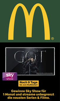 In der McDonald’s App kann man sich im Rahmen der kommenden, finalen “Game of Thrones” Staffel (Start am: 15.4.2019) momentan gerade einen kostenlosen Monat Sky Show sichern, wenn man vorher ein paar einfache […]