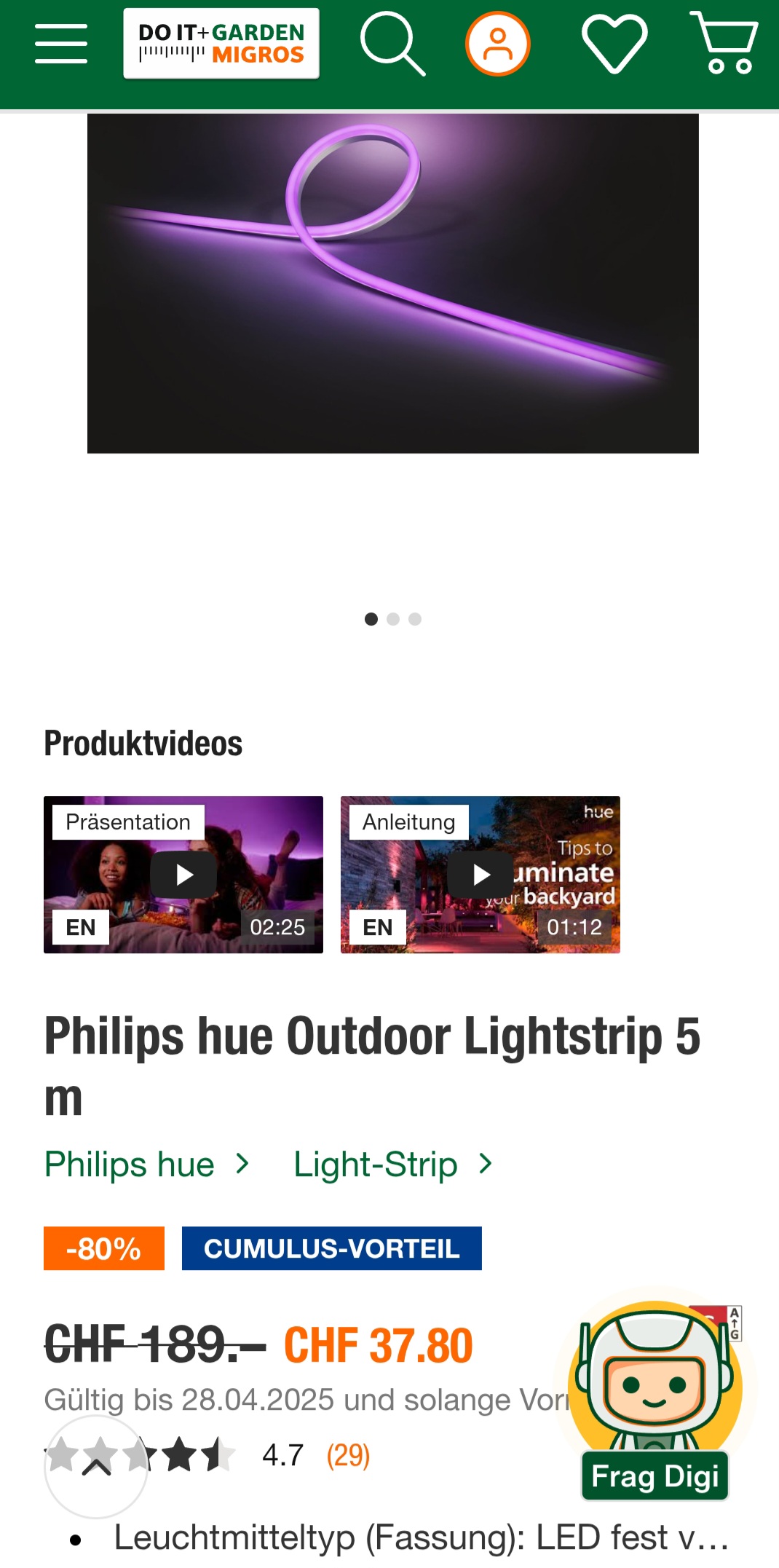 Diverse Philips hue Artikel mit bis zu 80% bei Migros Do it+Garden.