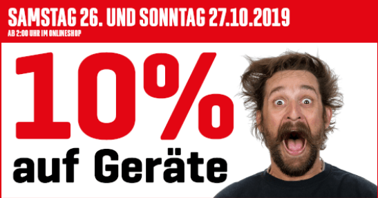 Am 26.10. & 27.10.2019 gibt es wieder 10% Rabatt auf Geräte bei Interdiscount (Online und in den Filialen).