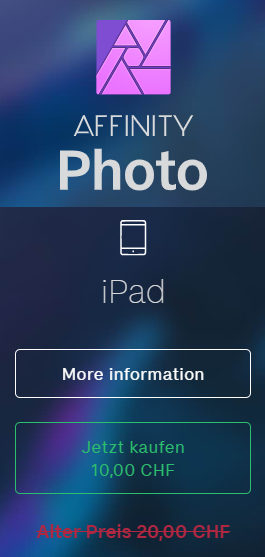 YO73 hat den neuen Beitrag Affinity Photo für iPad 50% Rabatt geschrieben vor 6 Jahren