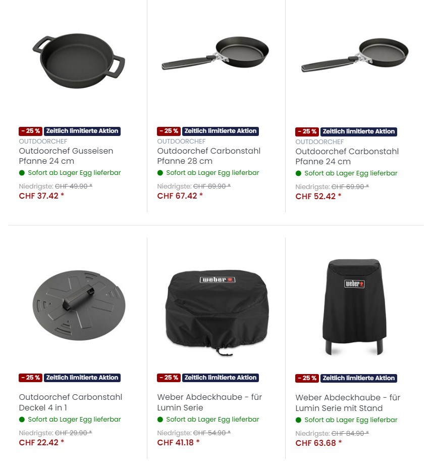 Ich habe gesehen, dass auf Grilljack.ch einige Grill zu Tiefstpreisen verkauft werden und auf das Zubehör generell 30% Rabatt gegeben wird.