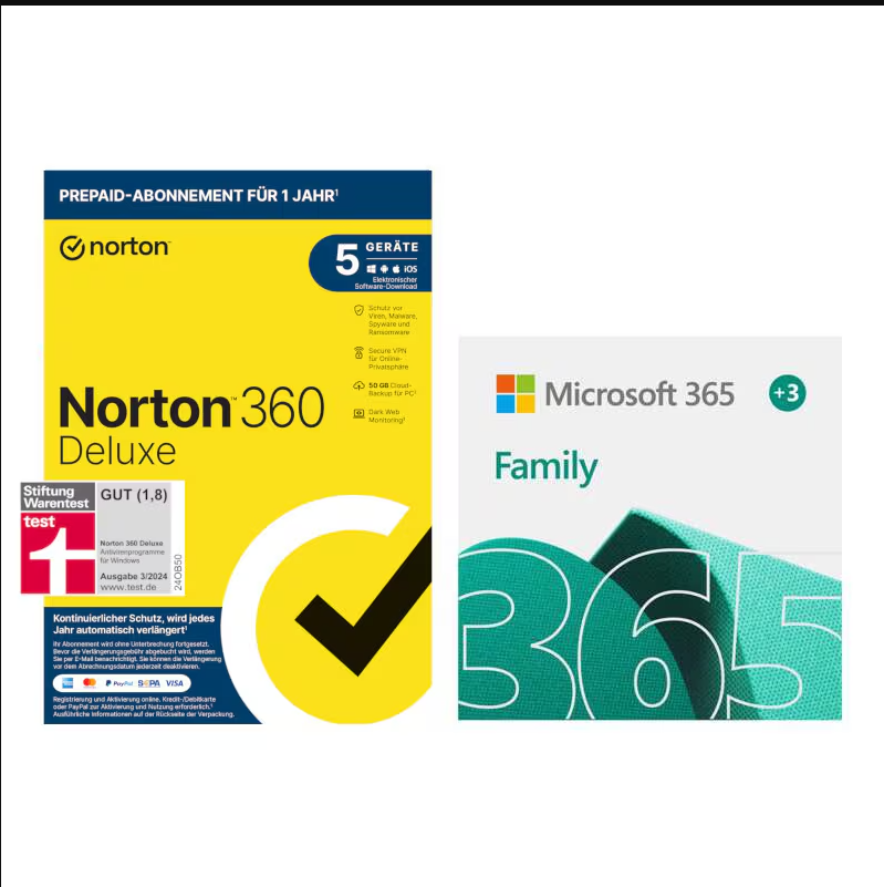 Microsoft Family 365 für 15 Monate. 1TB Onedrive und Office Apps. Dazu wahlweise Norton 360 oder F-Secure Total (12 Monate)