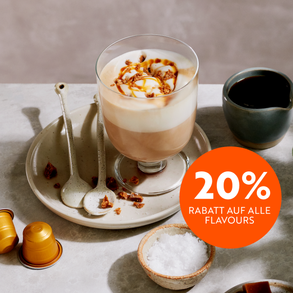 Unsere Kapseln mit Aroma machen auch den trübsten Herbsttag besser, umso mehr, wenn du sie günstiger shoppen kannst. Spare nun 20% auf alle unsere Kaffee Flavours